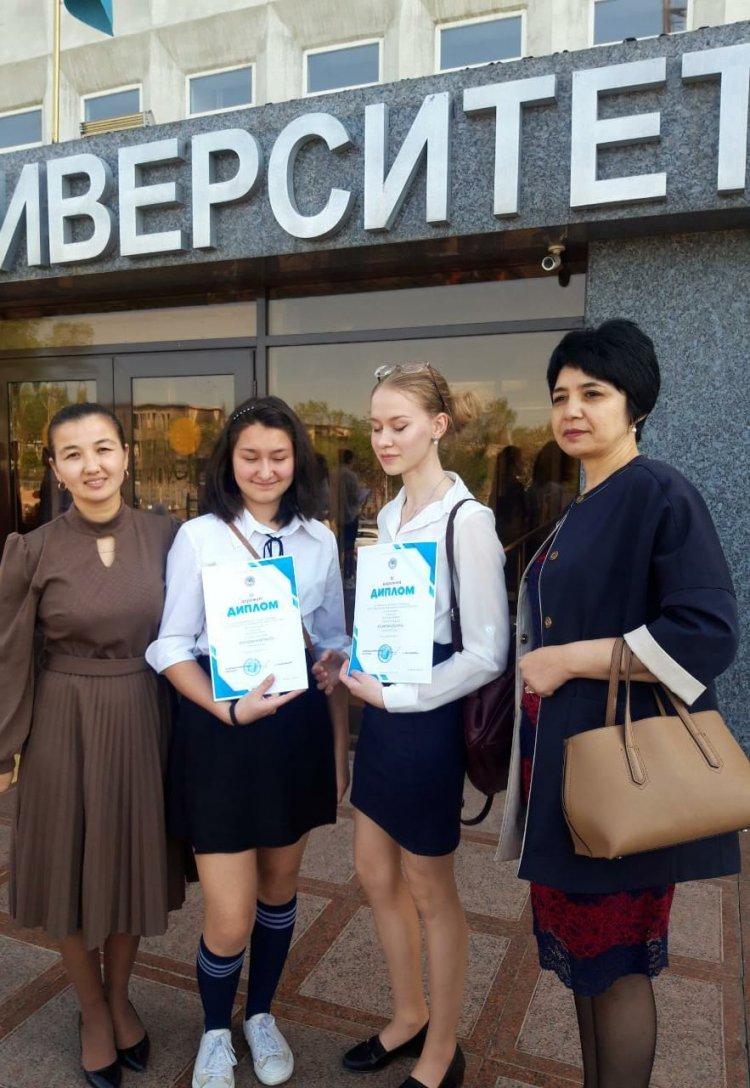 18 сәуір 2022 0 1 2 3 4 5 Награждение учеников, городской тур предметной олимпиады по биологии и физике Физика, 3 место - Казакова Полина, 11А класс, (учитель - Курбанова Г.М.)Биология, 3 место - Нурузова Маргарита, 10Б класс (учитель - Тенгизбаева Ж.Т.)