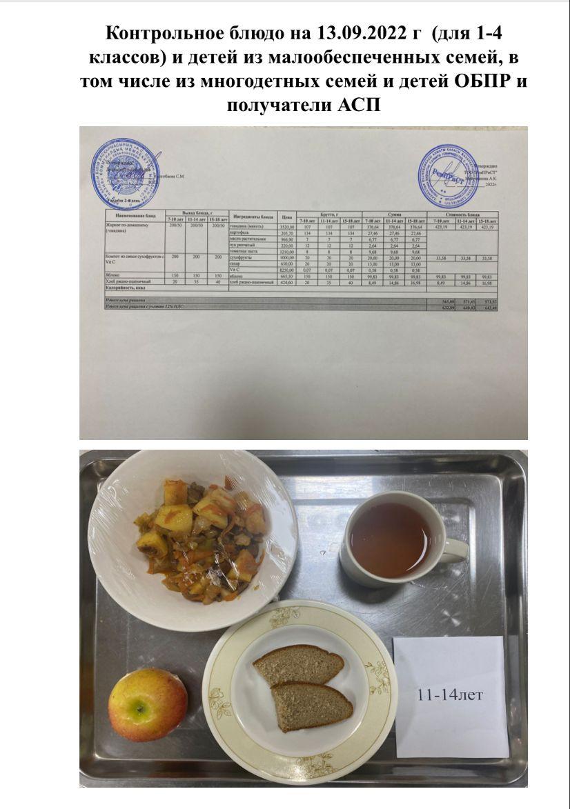 Меню (лето-осень) 2 неделя 2 день