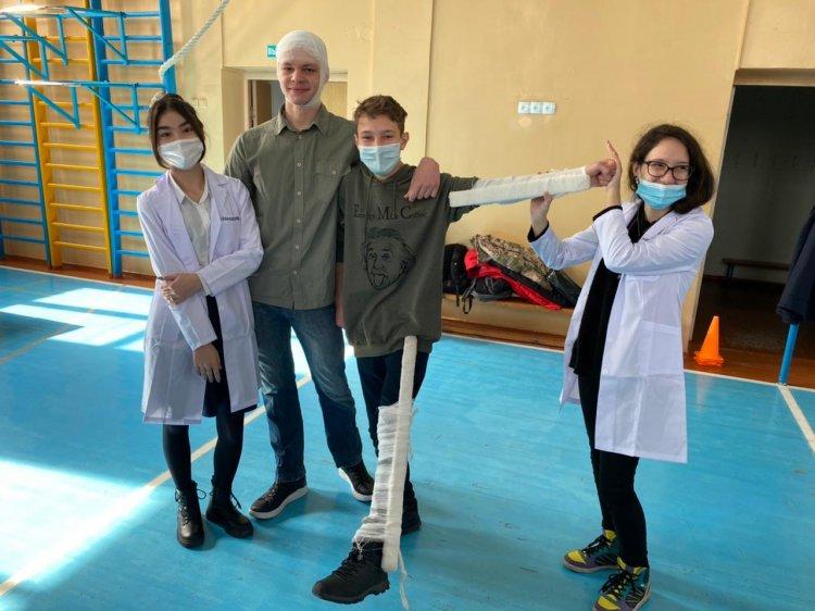 КГУ "Гимназии №4 им. А.С.Пушкина" » Мероприятия » Сегодня в гимназии провели мероприятие посвящённое к «Всемирному дню гражданской обороны». Ребята приняли активное участие, ознакомились с военным и медицинским оборудованием
