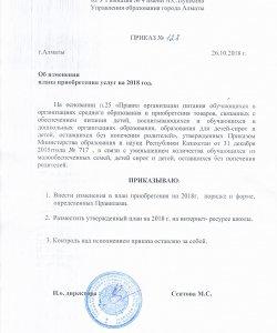 Приказ "О привлечении поставщика услуг по организации горячего питания для учащихся"