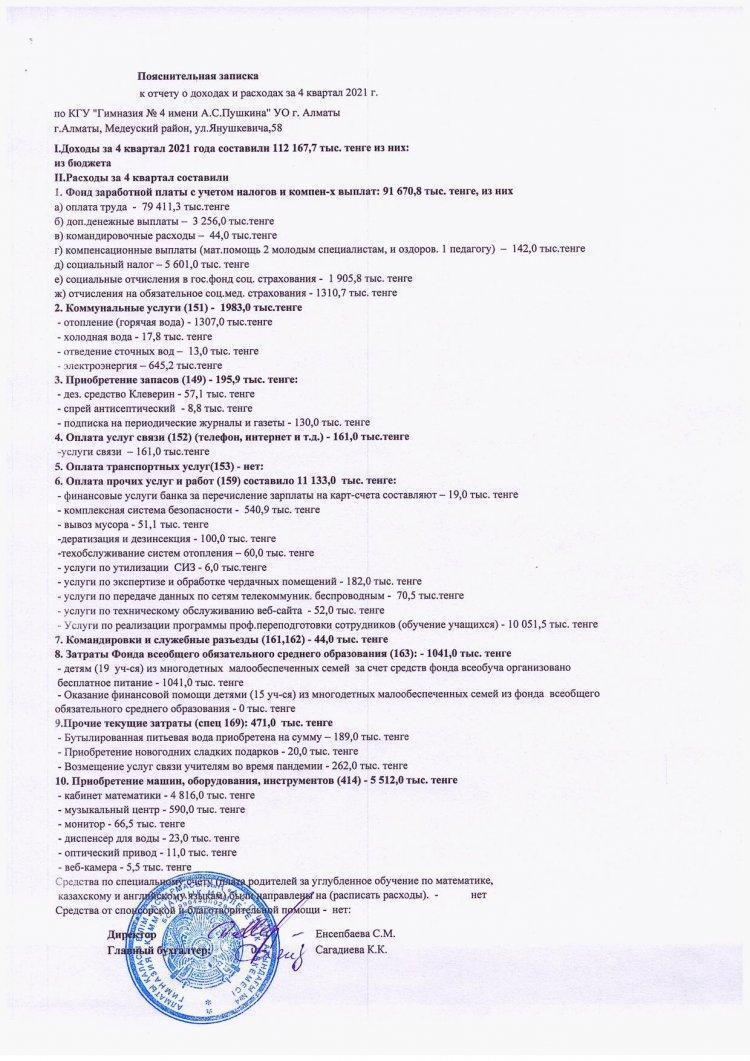Отчет о доходах и расходах за 4 квартал 2021 год