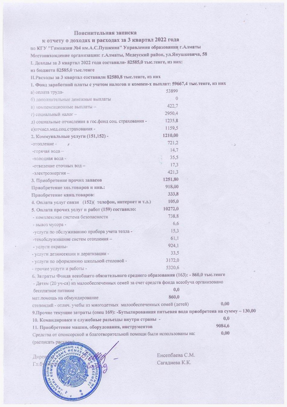 » Отчет о доходах и расходах за 3 кв 2022