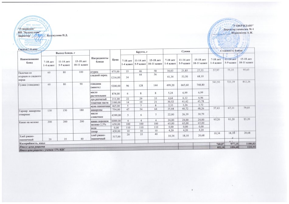 24 қараша 2025 0 1 2 3 4 5 Четырехнедельное меню блюд для организации бесплатного питания обучающихся в организациях среднего образования