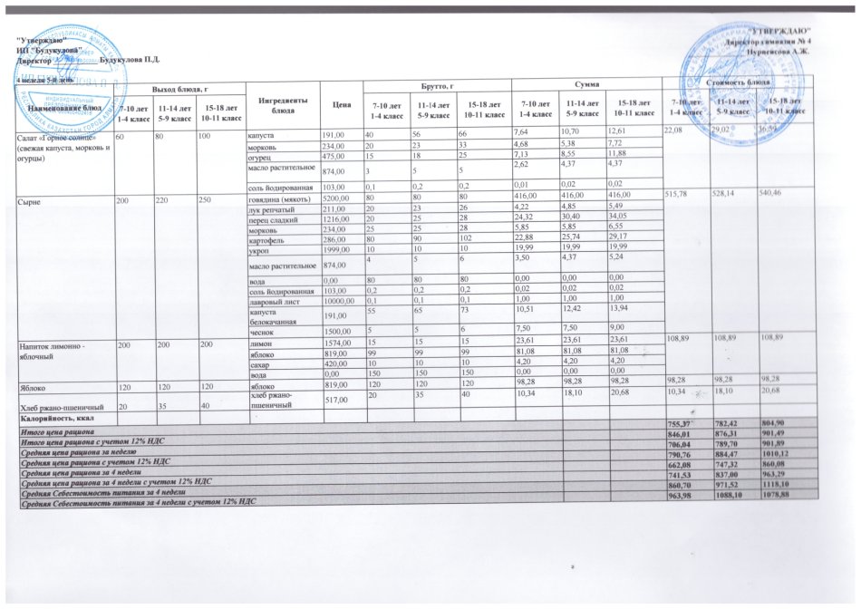 28 қараша 2025 0 1 2 3 4 5 Четырехнедельное меню блюд для организации бесплатного питания обучающихся в организациях среднего образования