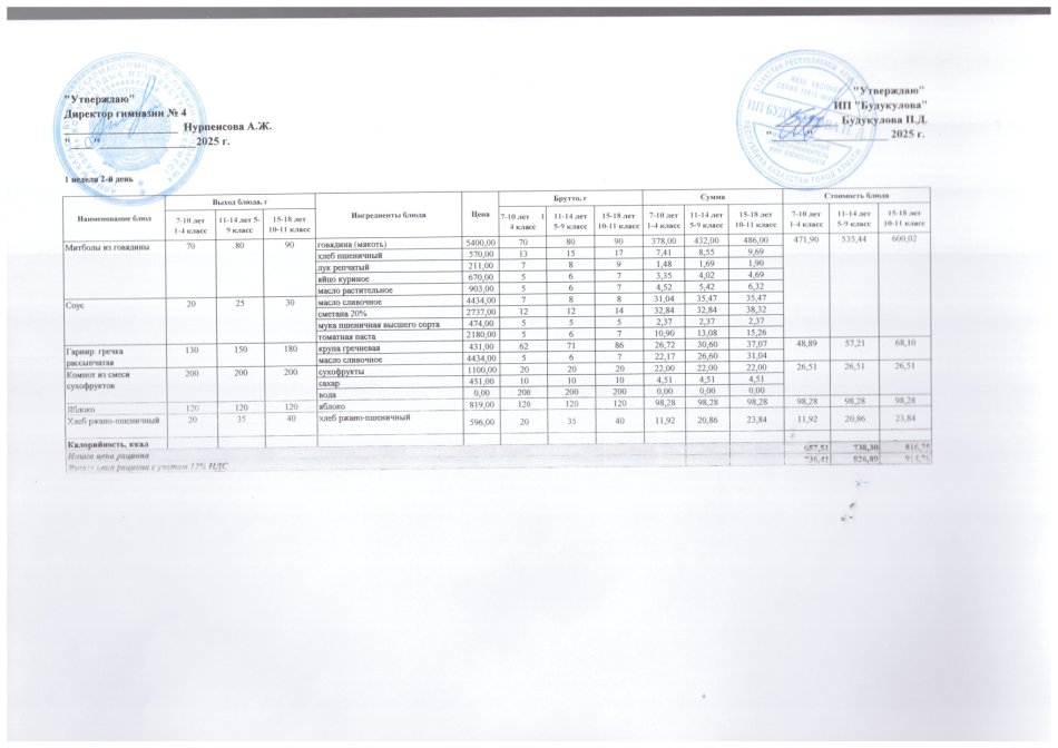 02 желтоқсан 2025 0 1 2 3 4 5 Четырехнедельное меню блюд для организации бесплатного питания обучающихся в организациях среднего образования