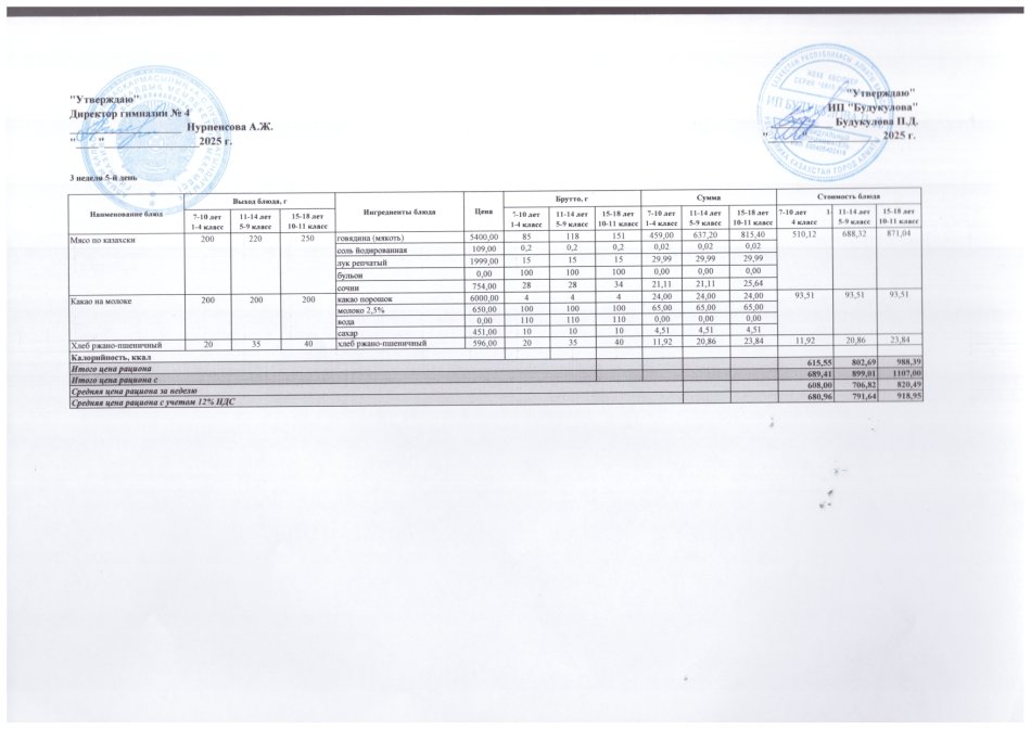 19 желтоқсан 2025 0 1 2 3 4 5 Четырехнедельное меню блюд для организации бесплатного питания обучающихся в организациях среднего образования